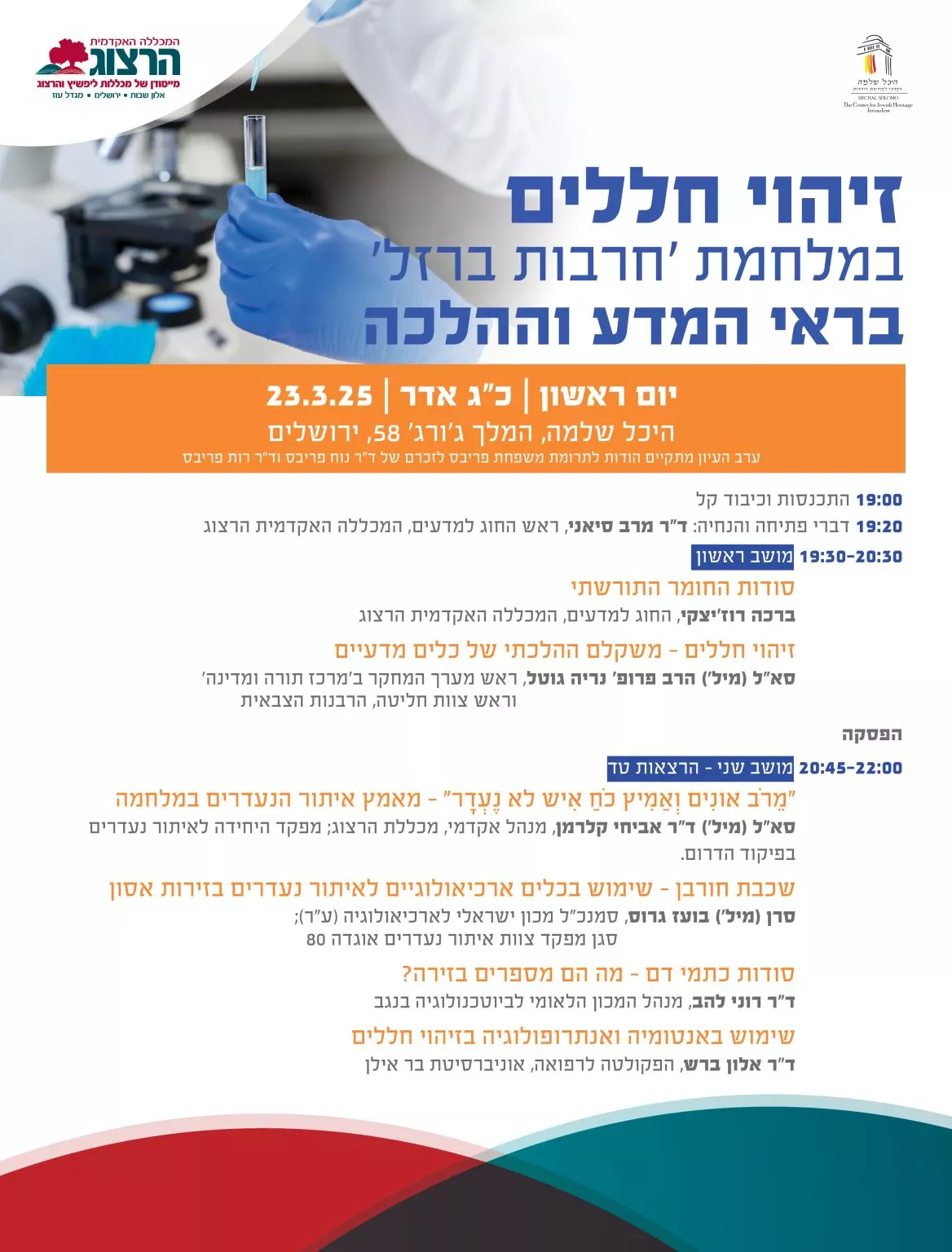 דף הבית ❯ אירועים וכנסים ❯ אירועים וכנסי עבר ❯ זיהוי חללים במלחמת 'חרבות ברזל' בראי המדע וההלכה