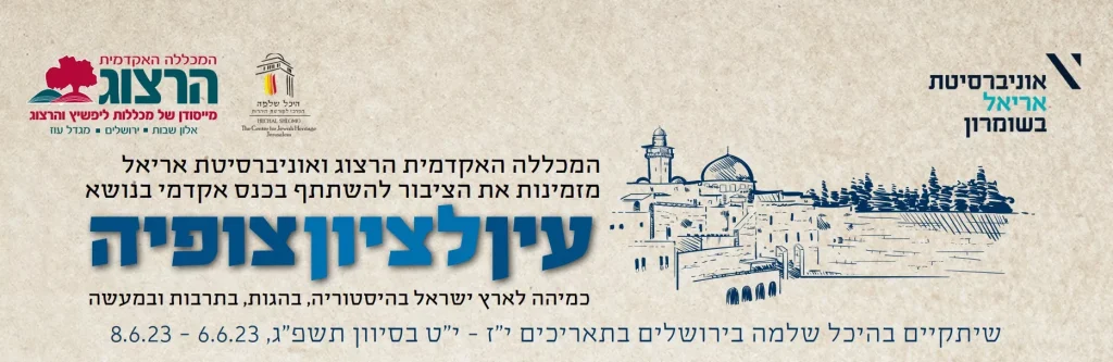 Jerusalem, June 1, 2023: The conference will take place at the iconic Hechal Shlomo building in downtown Jerusalem, hosted and organized by Herzog College together with Ariel University. Its title – “Ayin L’Tzion Tzofia – Looking Toward Zion: The Longing for the Land of Israel in History, Thought, Culture & Reality” references the lyrics of “Hatikva”. The conference sessions will explore the meaning of Eretz Yisrael to Jews throughout the ages.